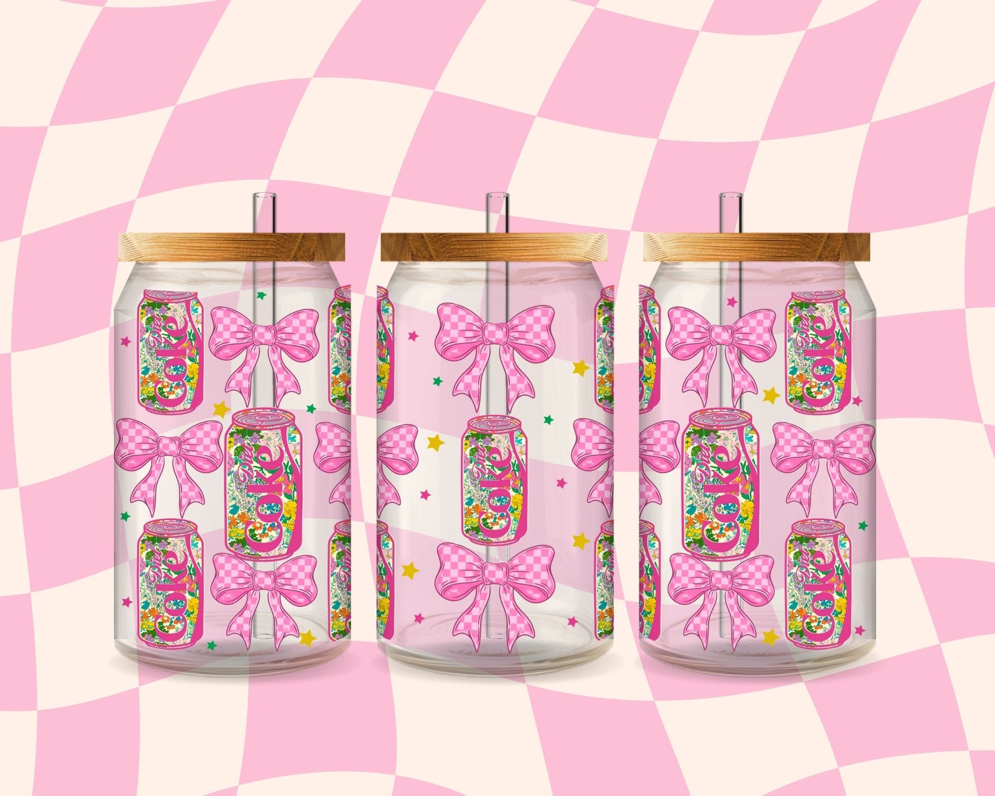 DC floral bow coquette grid - UV dtf wrap 16oz libbey : MMDD