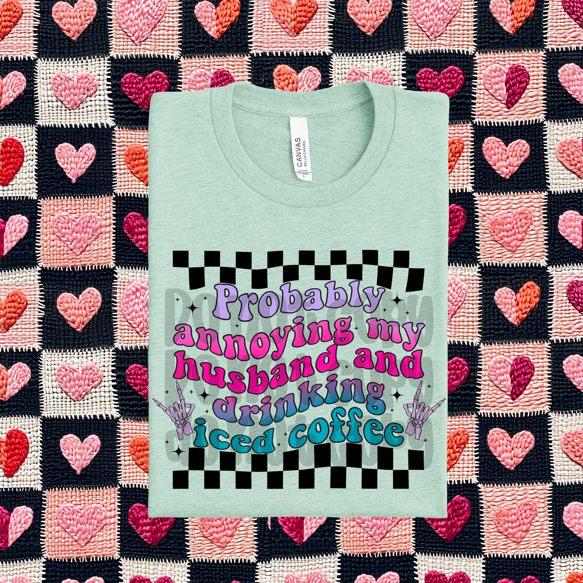 Probably annoying my husband and drinking iced coffee skellie - DTF TRANSFER (BWDD)
