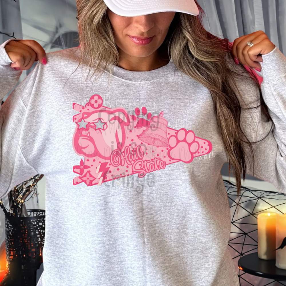 Hail State ; preppy pink PENNANT FLAG mascot drop ; DTF TRANSFER