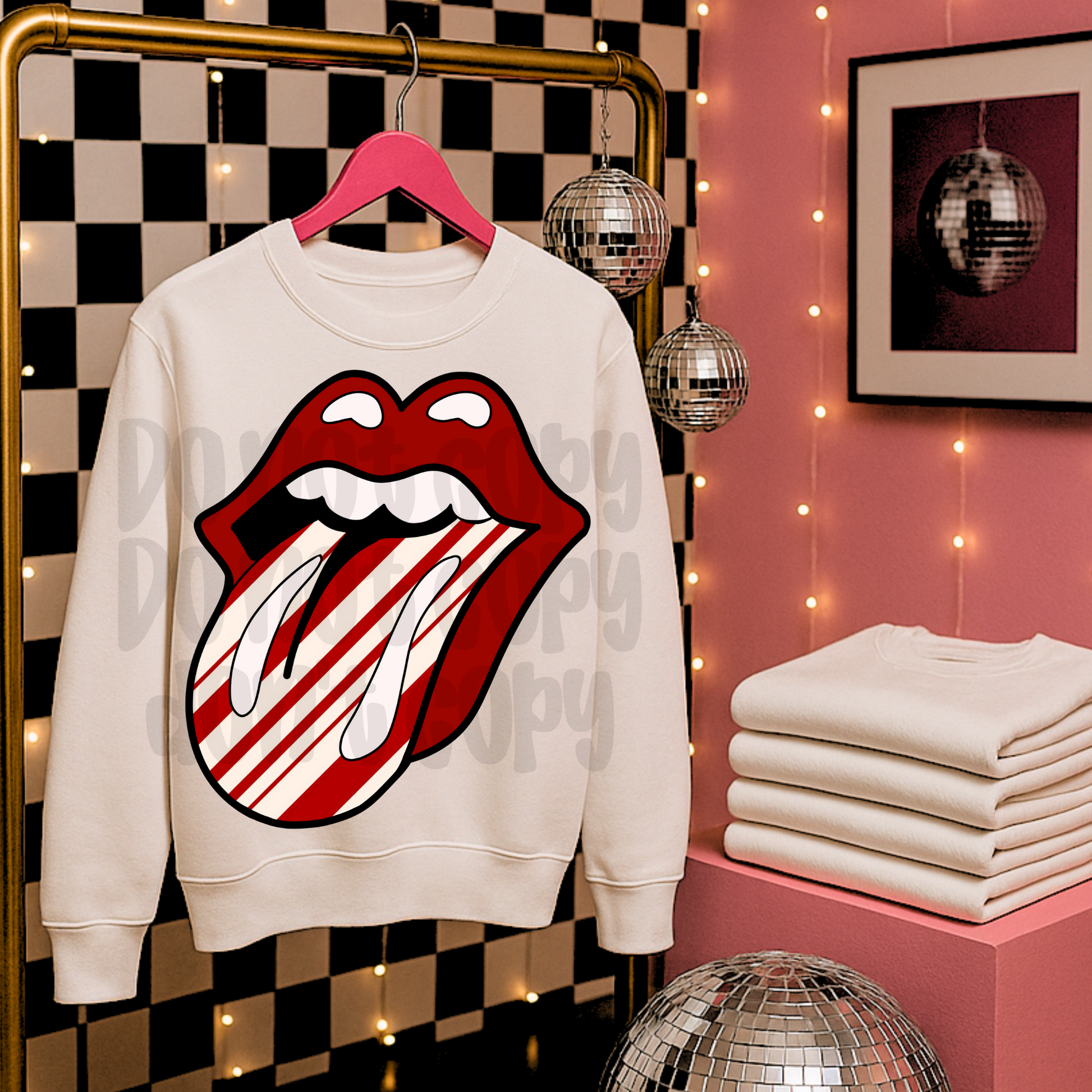 Peppermint candy cane Christmas rolling lip and tongue EXCLUSIVE - DTF TRANSFER
