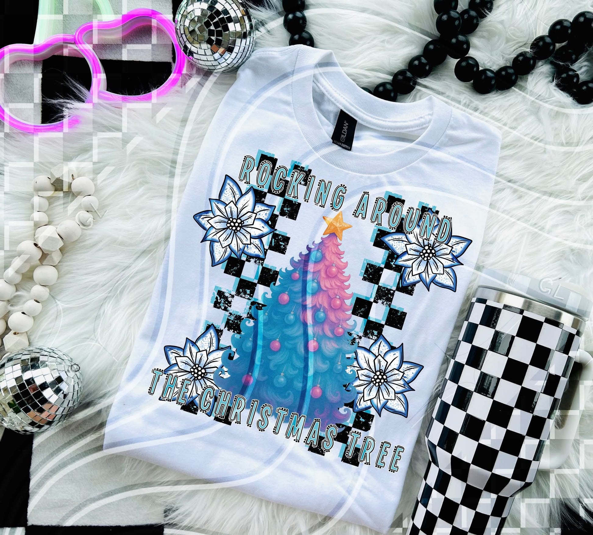 Rocking around the Christmas tree checkered - DTF TRANSFER (GLD925)
