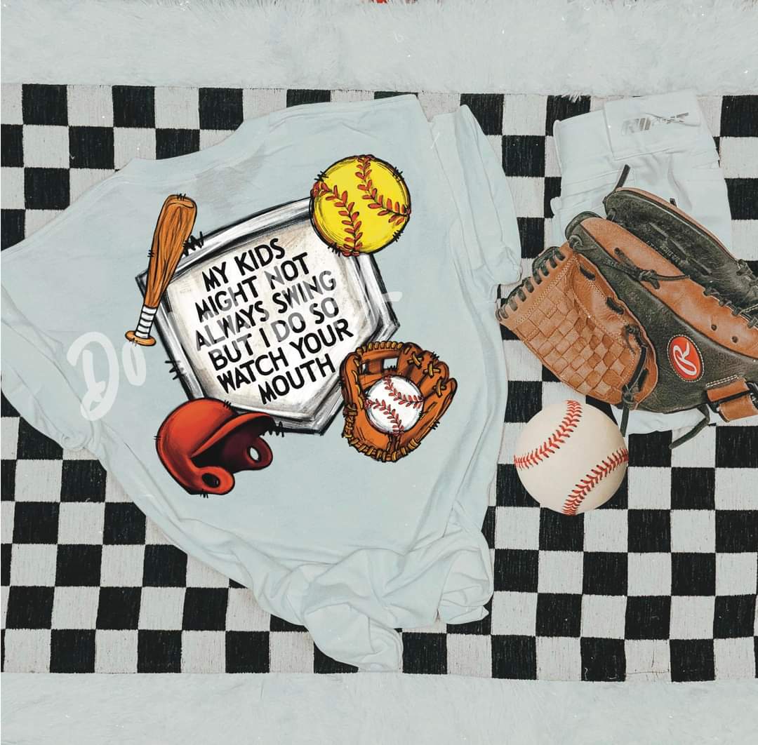 Softball and baseball My KIDS might not swing but I do WATCH YOUR MOUTH - DTF TRANSFER (RTD)