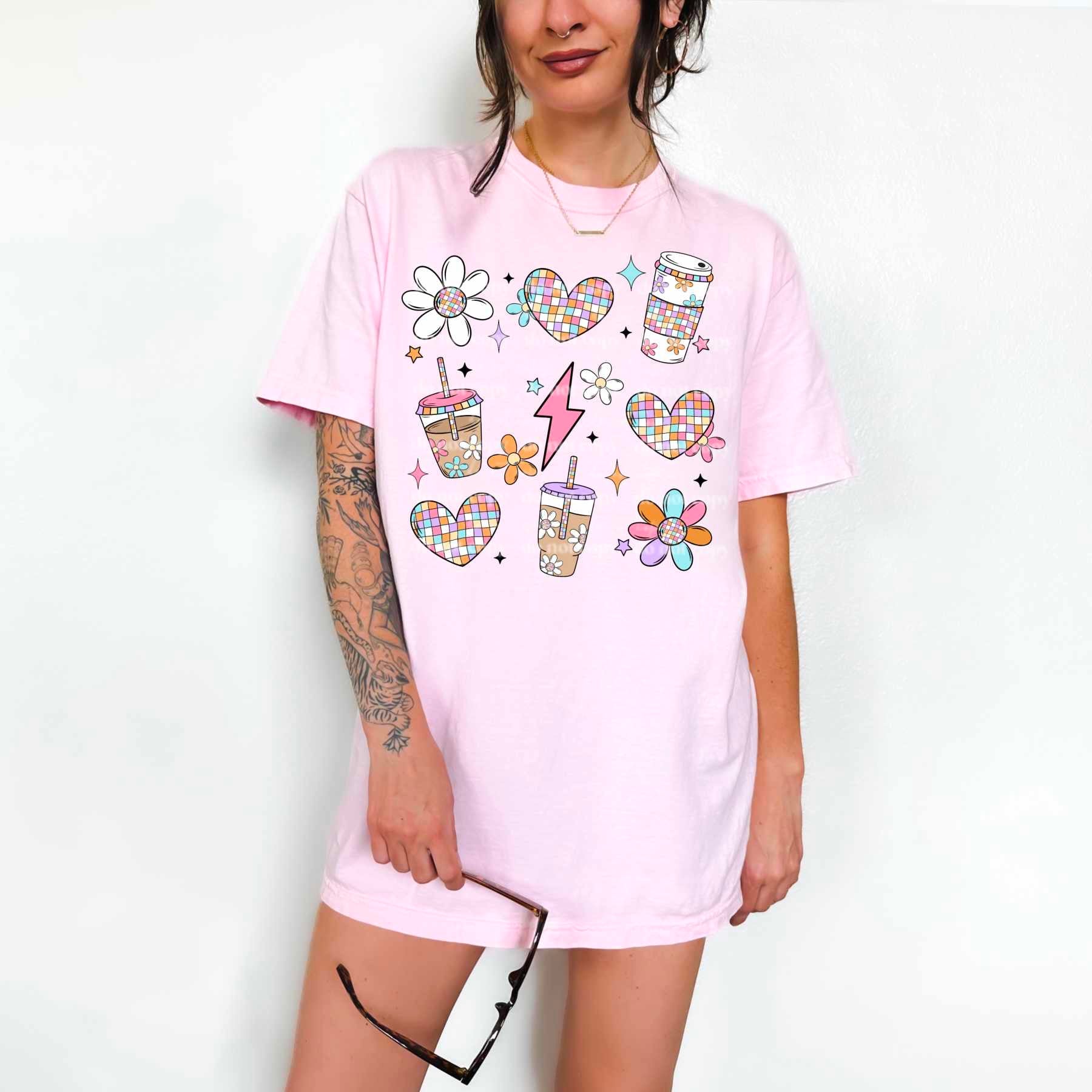 Retro coffee grid w/ or w/o sleeves - DTF TRANSFER - (CSC)