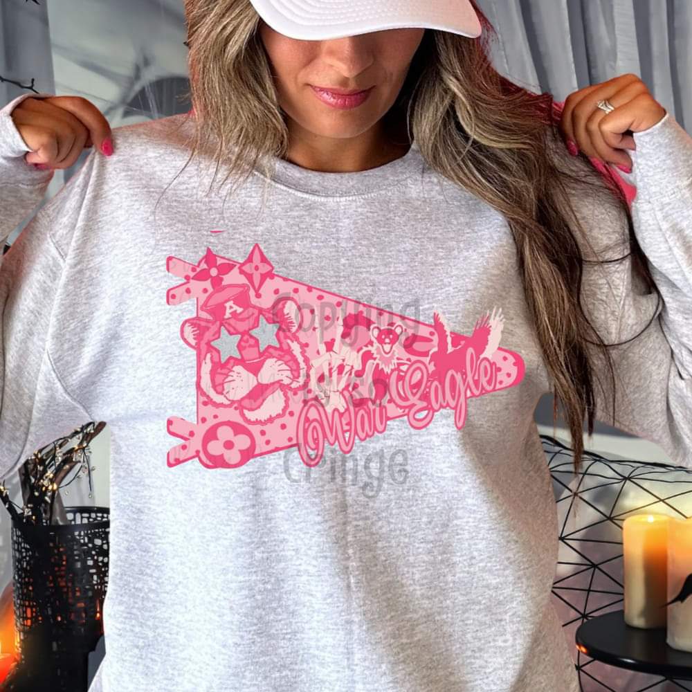 War Eagles ; preppy pink PENNANT FLAG mascot drop ; DTF TRANSFER
